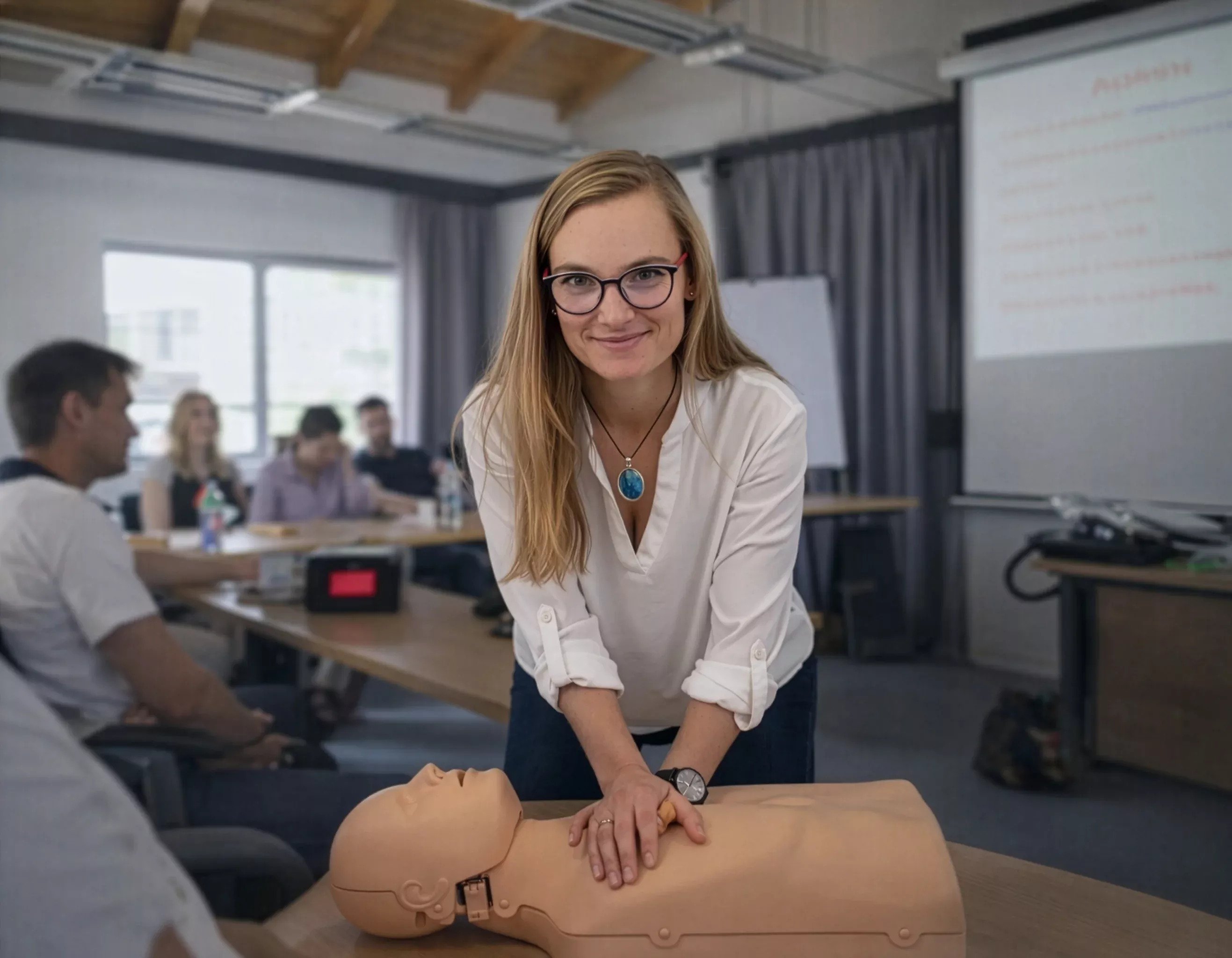 Interaktivní kurz vedený lékařkou přímo ve vaší firmě. Každé školení připravujeme podle typu provozu, struktury týmu a konkrétních potřeb společnosti. Účastníci odcházejí s jistotou, že dokážou správně reagovat, a zároveň se zkušeností, která je skutečně obohatí a baví.